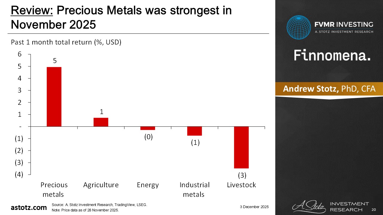 Precious Metals was strongest in November 2025
