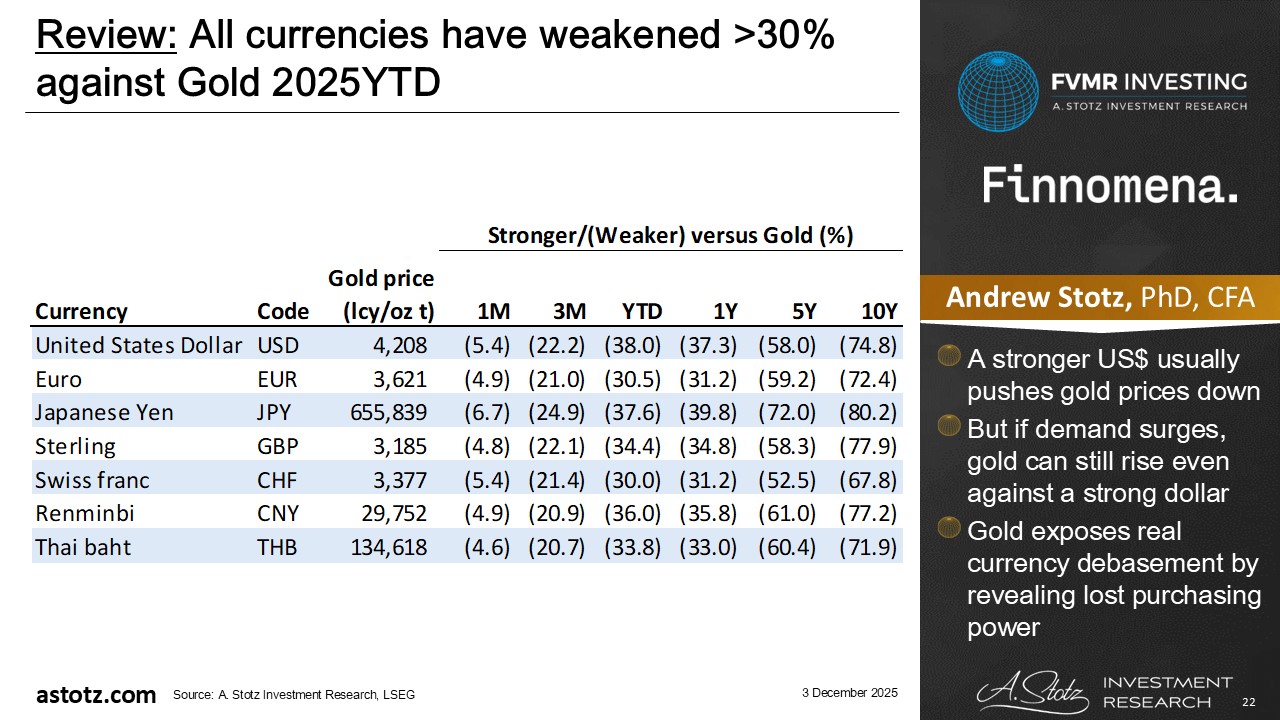 All currencies have weakened >30% against Gold 2025YTD
