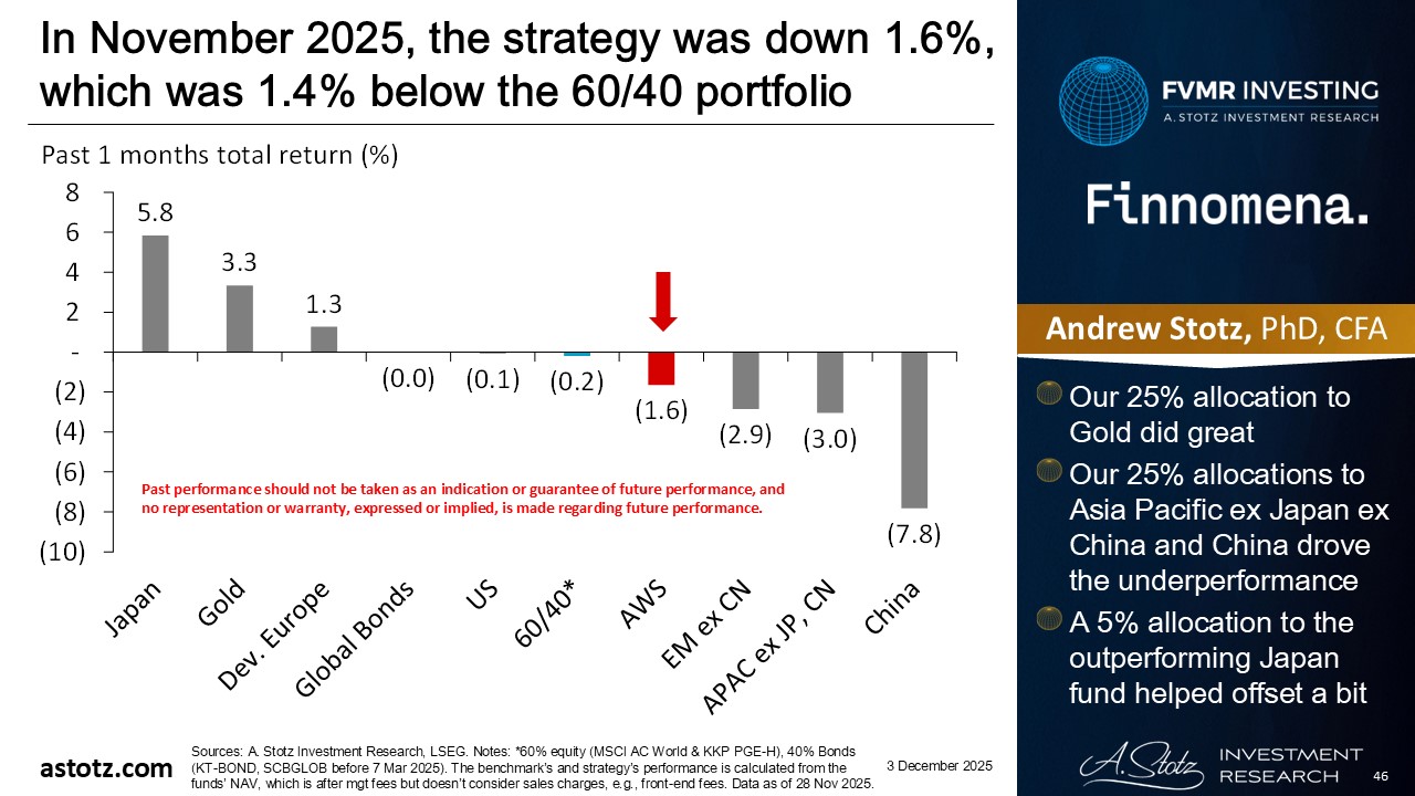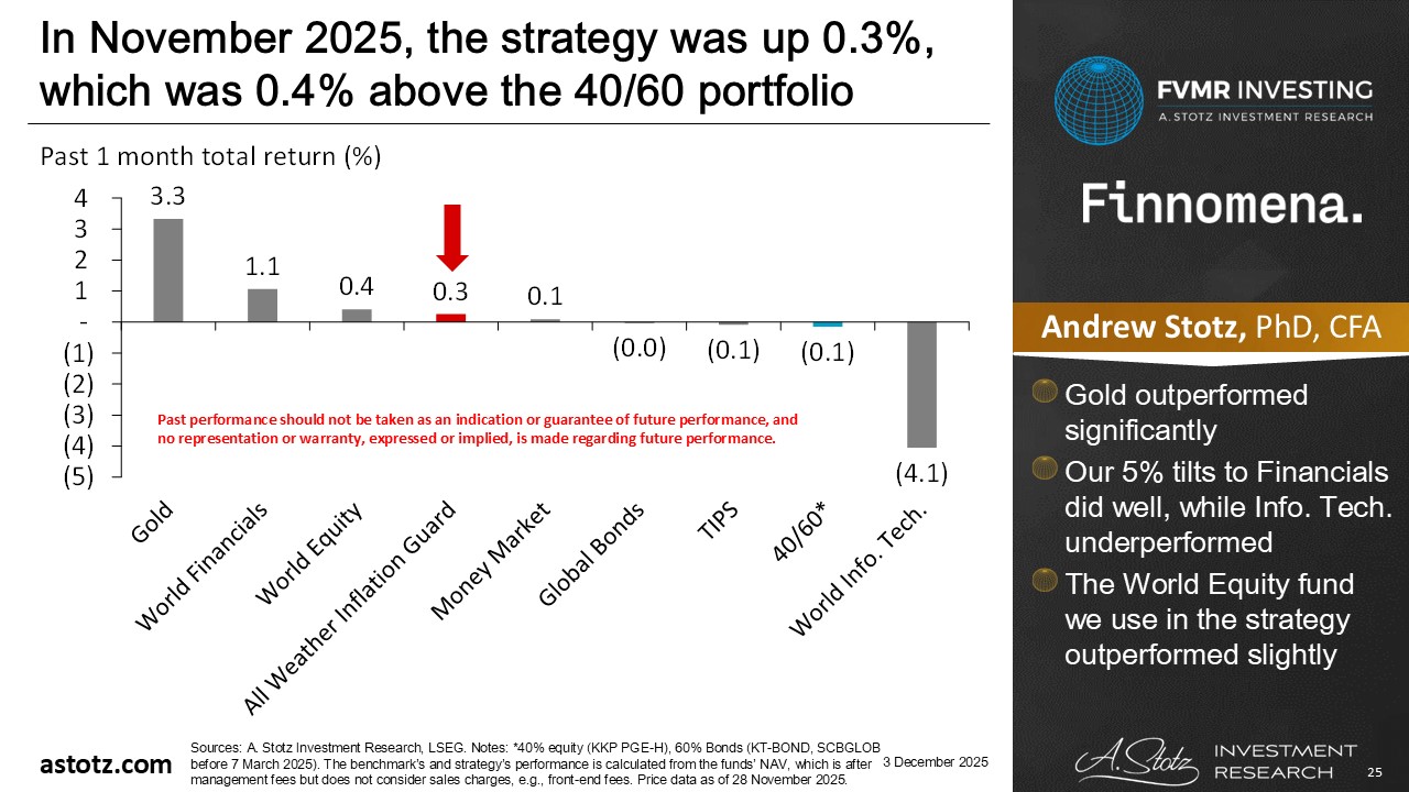 In November 2025, the strategy was up 0.3%, which was 0.4% above the 40/60 portfolio