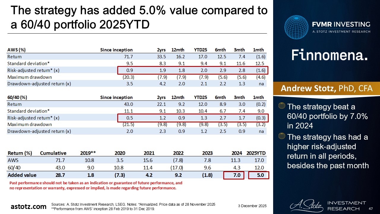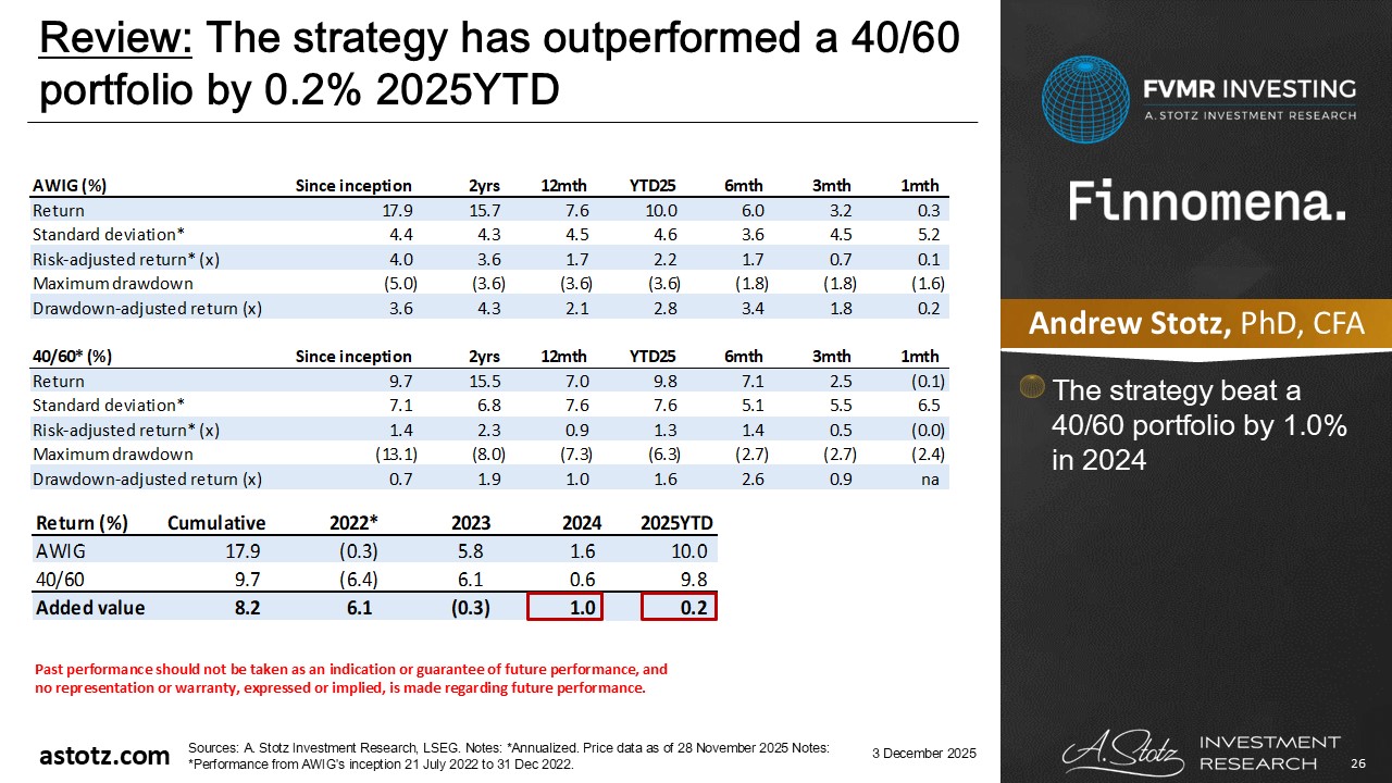 The strategy has outperformed a 40/60 portfolio by 0.2% 2025YTD