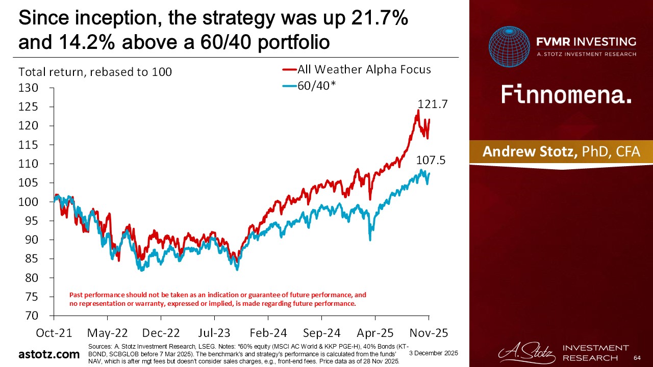 Since inception, the strategy was up 71.7% and 28.7% above a 60/40 portfolio