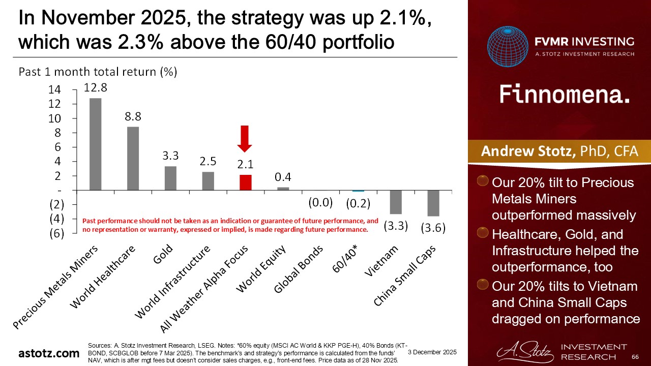 In November 2025, the strategy was up 2.1%, which was 2.3% above the 60/40 portfolio