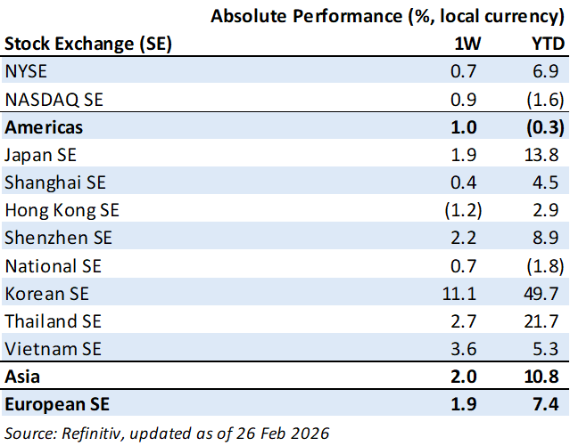 Non-US equity funds saw US$17bn in inflows last week: The 2nd-highest on record. This was particularly driven by South Korean funds, followed by Japan.