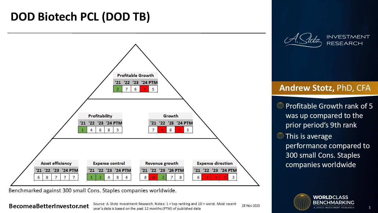 - This is average performance compared to 300 small Cons Staples companies worldwide