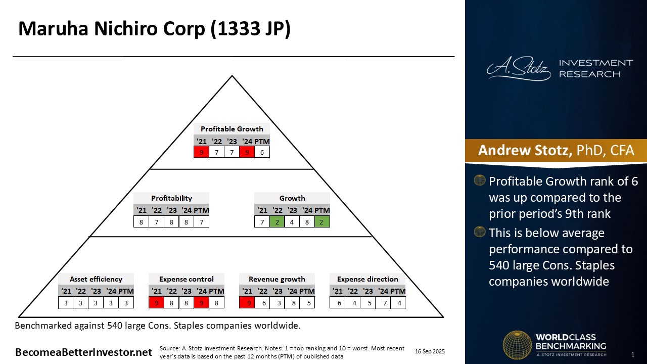 - Profitable Growth rank of 6 was up compared to the prior period’s 9th rank