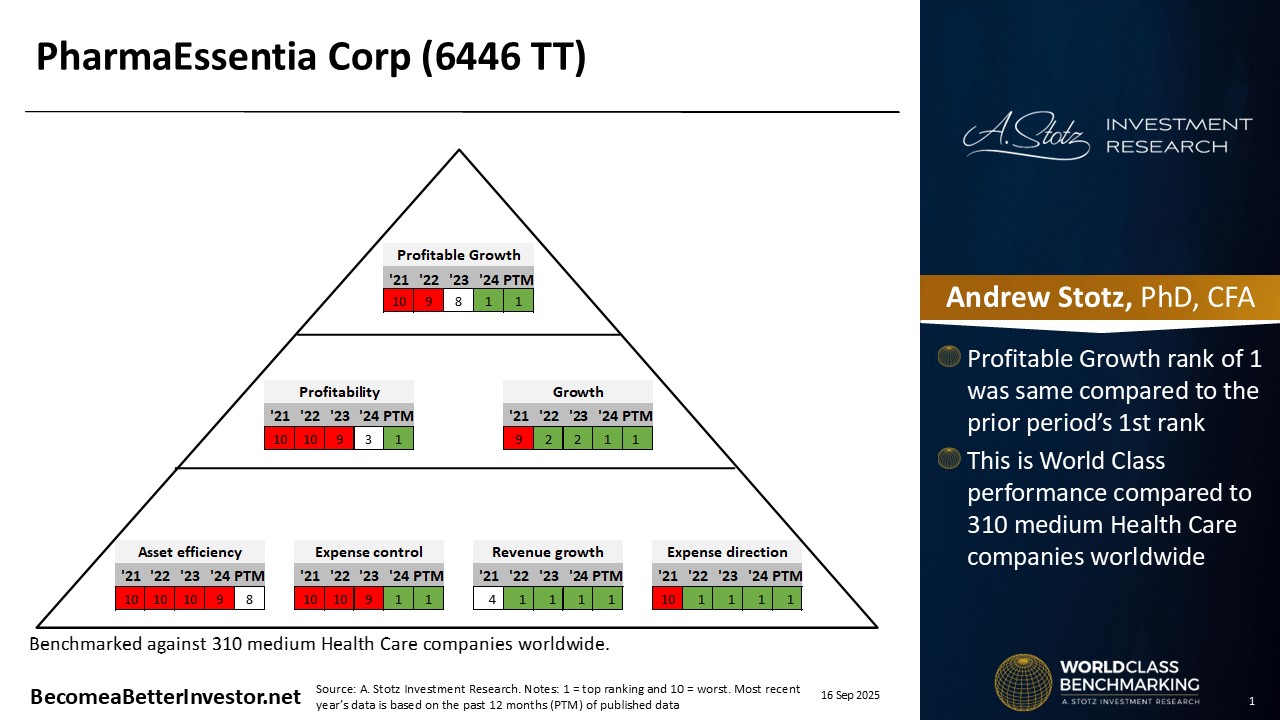 - This is World Class performance compared to 310 medium Health Care companies worldwide